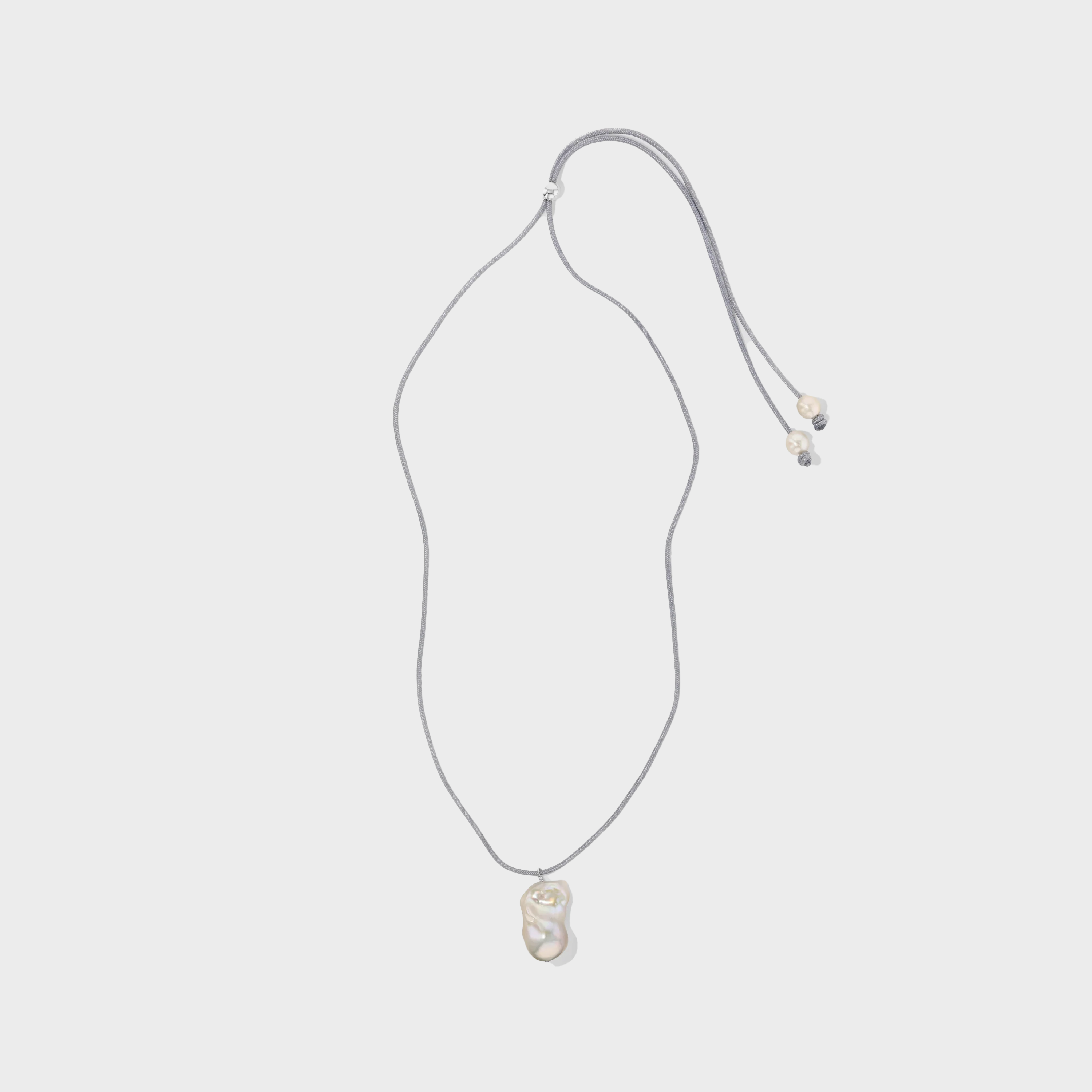The effortlessly elegant Floating Pearl Necklace. With the universal length of 33-inch satin cord, this design highlights a striking 15mm baroque pearl pendant, complemented by two 7mm pearls at each end for a harmonious balance.